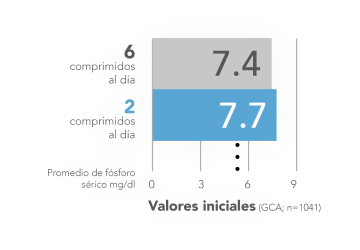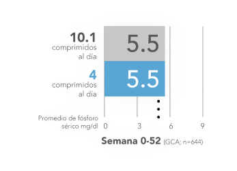 En un ensayo en fase III, la carga de comprimidos fue un 62% menor que la de sevelámero en un período de 6 meses.5