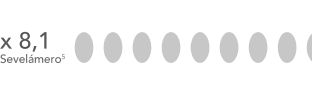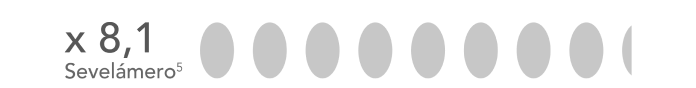 Velphoro® demostró una capacidad captora casi 3 veces mayor que la del sevelámero, lo que comporta a una menor carga de comprimidos.2-4